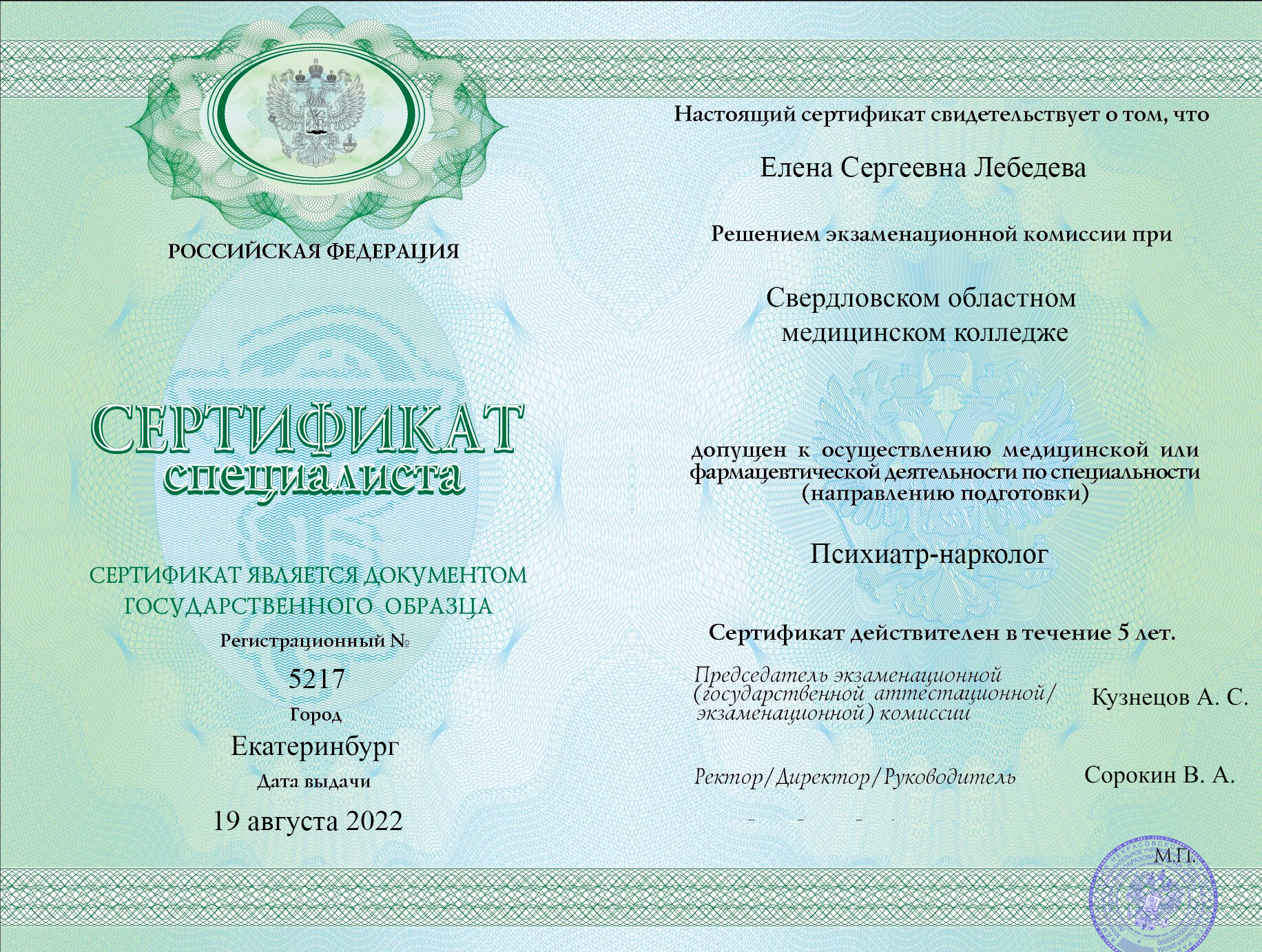 Елена Сергеевна Лебедева врач нарколог клиники доктора Стукаловой в Юрге